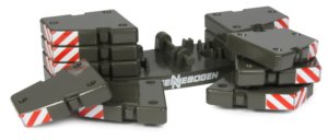The rear ballast plate locks into place with five additional ballast plates for each side to increase the weight to prevent the model from toppling over.