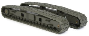 The main undercarriage has fold out supports with jacks that lower to allow self assembly on site and this is operational on the replica, with the track frames clicking into place on the undercarriage frame.