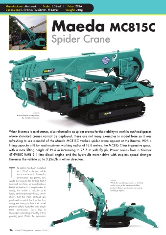 refreshing to see a model of the Maeda MC815C tracked spider crane appear at the Bauma. With a