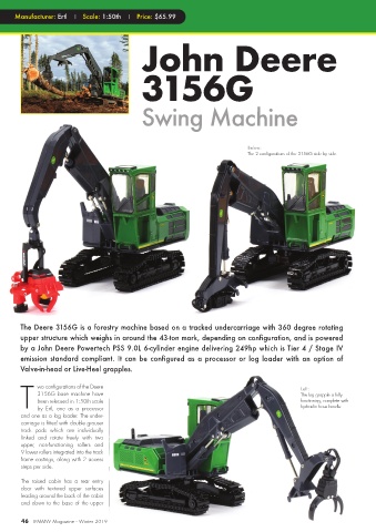 The Deere 3156G is a forestry machine based on a tracked undercarriage with 360 degree rotating