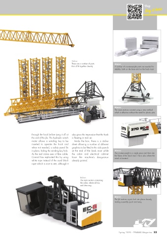 As the real crane uses a fibre cable, the cabin and electrical cabinet The counterweight is a single piece and slots into